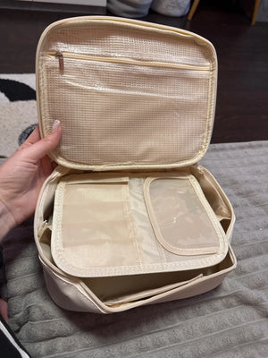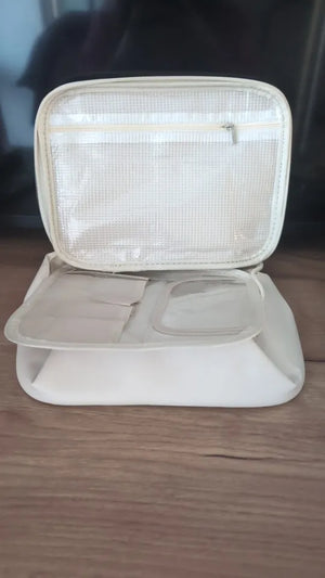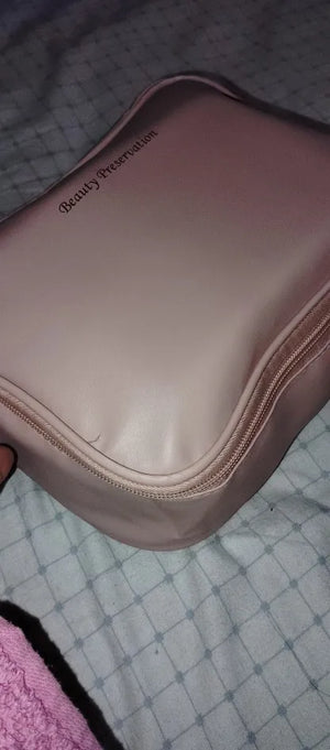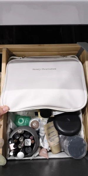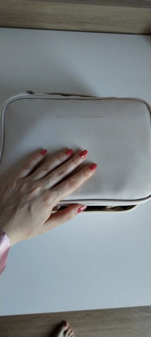 Experience the joy of organised beauty essentials on the go. This stylish bag keeps your makeup safe and accessible, making travel a breeze.