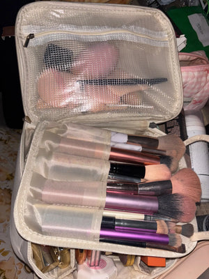 It boasts a large capacity, perfect for storing all your beauty essentials, from brushes and palettes to toiletries, ensuring nothing is left behind.